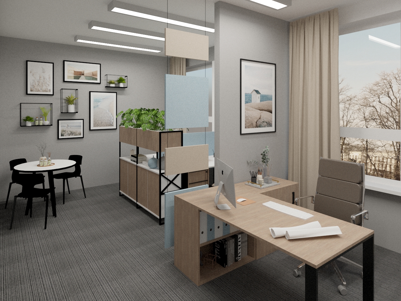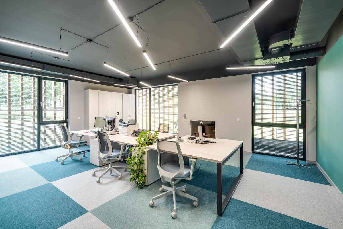 - Zwróć uwagę na lokalizację względem okien. Biurko ustawione bokiem do okna zapewnia równomierne oświetlenie i pozwala uniknąć odblasków na monitorach.